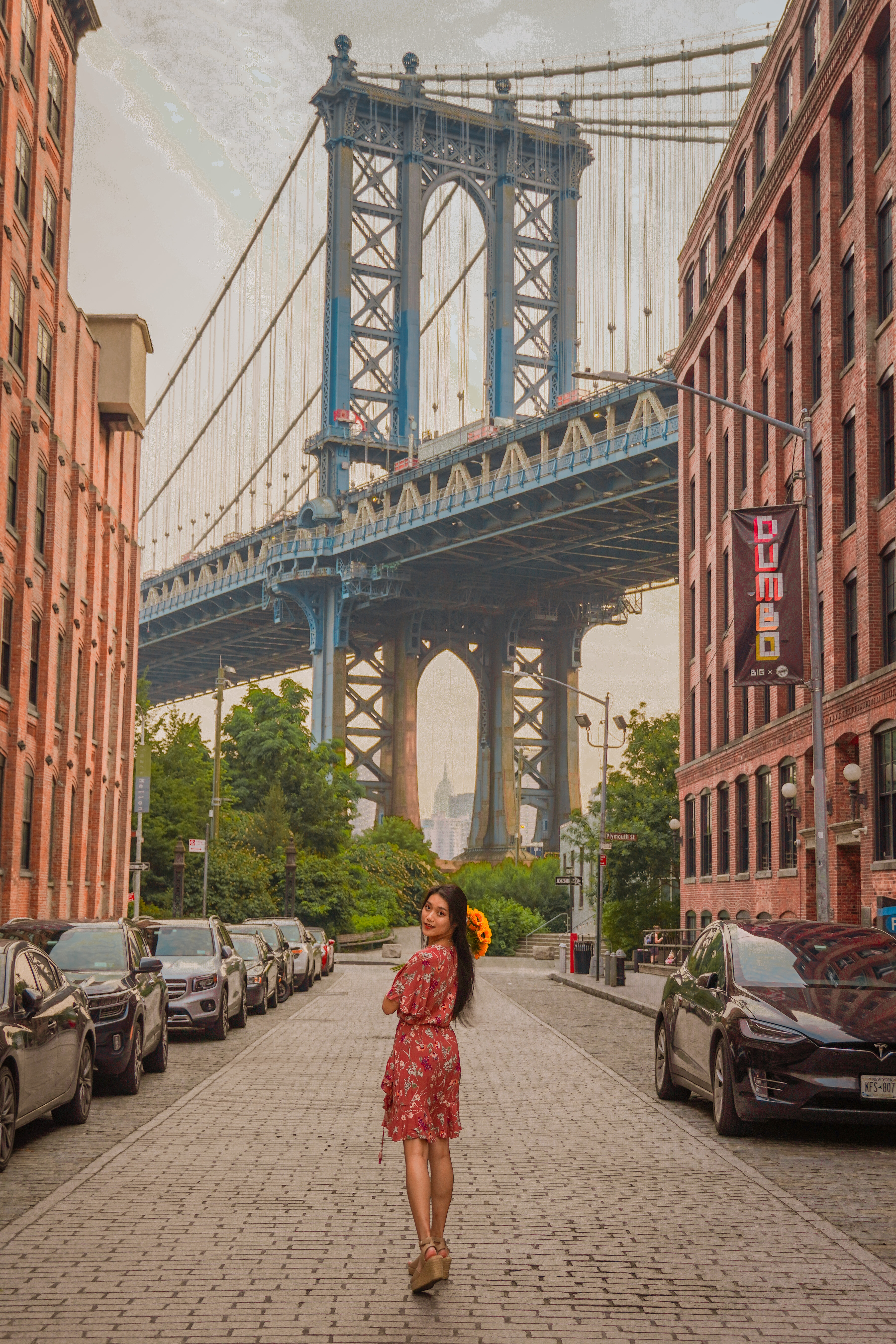 Washington Street is a favorite among photographers and tourists. This cobblestone haven, nestled under the majestic Manhattan Bridge, is an absolute treasure trove for Instagram-worthy moments. The beautiful brick buildings on either side of the narrow, picturesque street capture the Manhattan Bridge perfectly in the center. And you may not have known this, but you can even see the iconic Empire State Building framed in between the legs of the Manhattan Bridge!