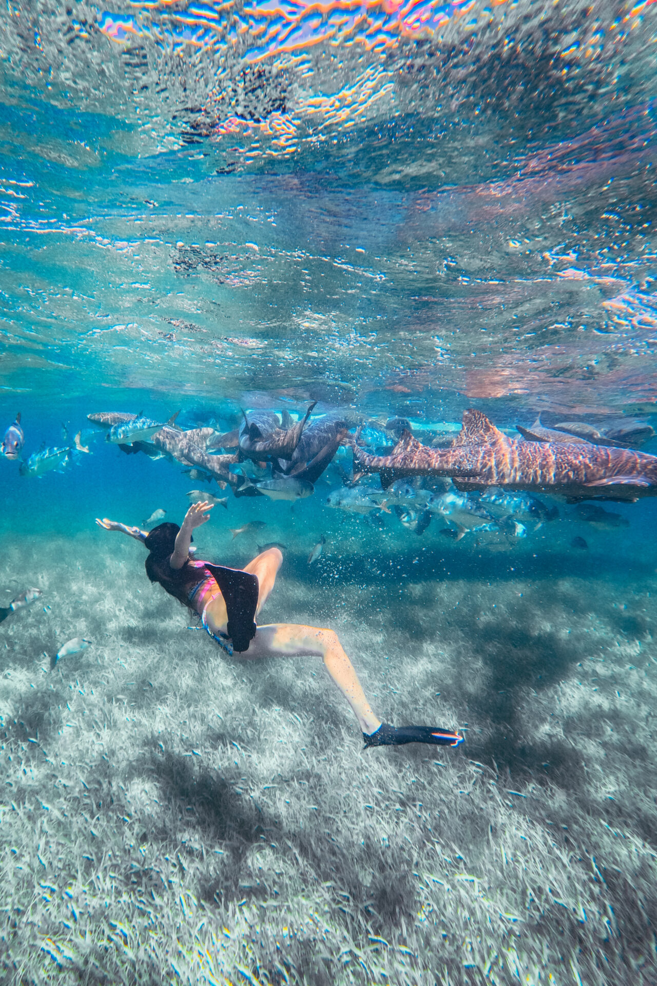 Shark Ray Alley is a highlight of Hol Chan—a region of the reserve famous for its high concentration of friendly, cute nurse sharks and jacks. If you’ve ever wanted to swim with sharks, Shark Ray Alley might be the best place to do so—the sharks are so adorable and gentle. I couldn’t stop gushing over them!